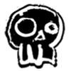 Abstract illustration of a person with glasses, animatedly pointing at a skateboard with a skull on it, using a line art style over a swirling background of gray, orange, and white colors.